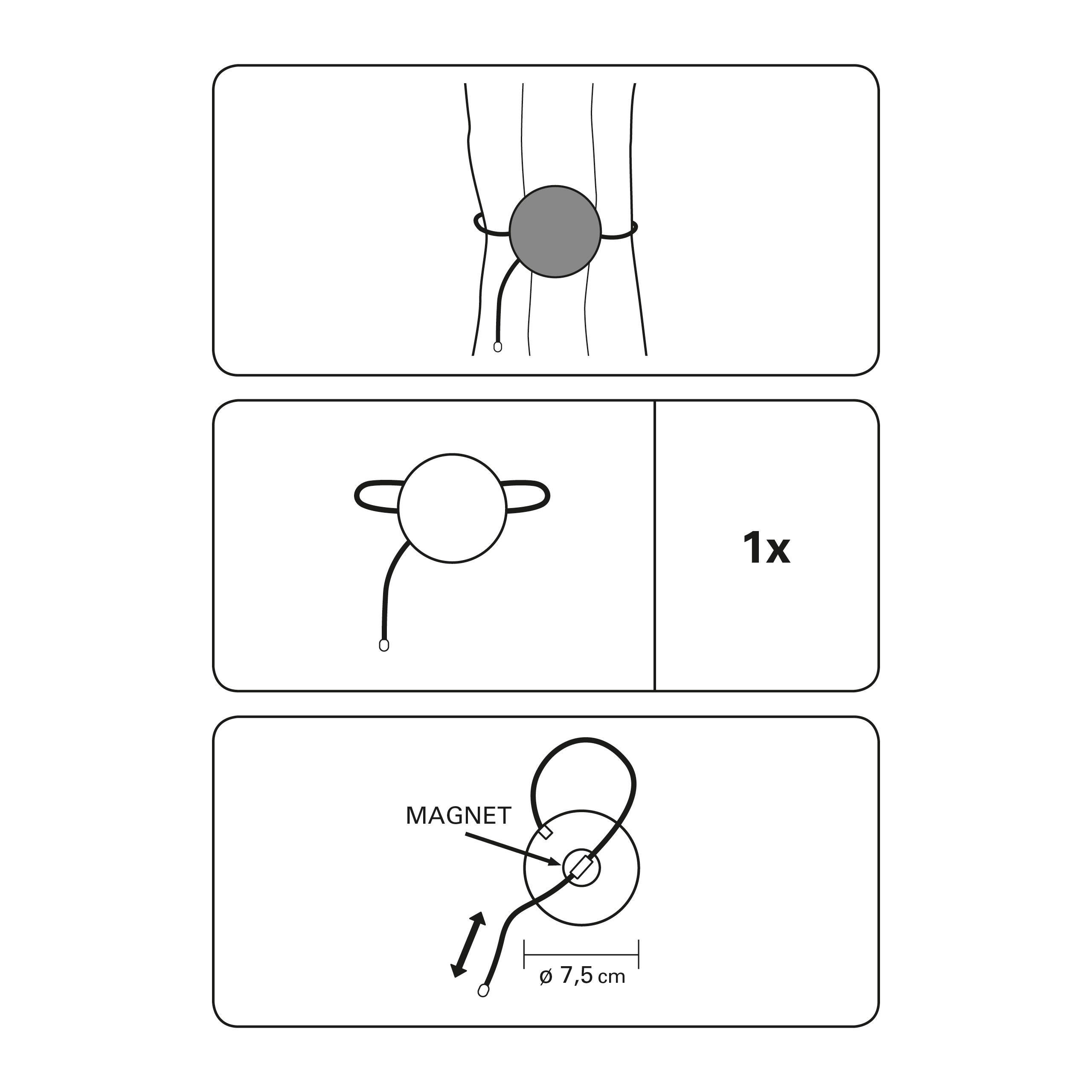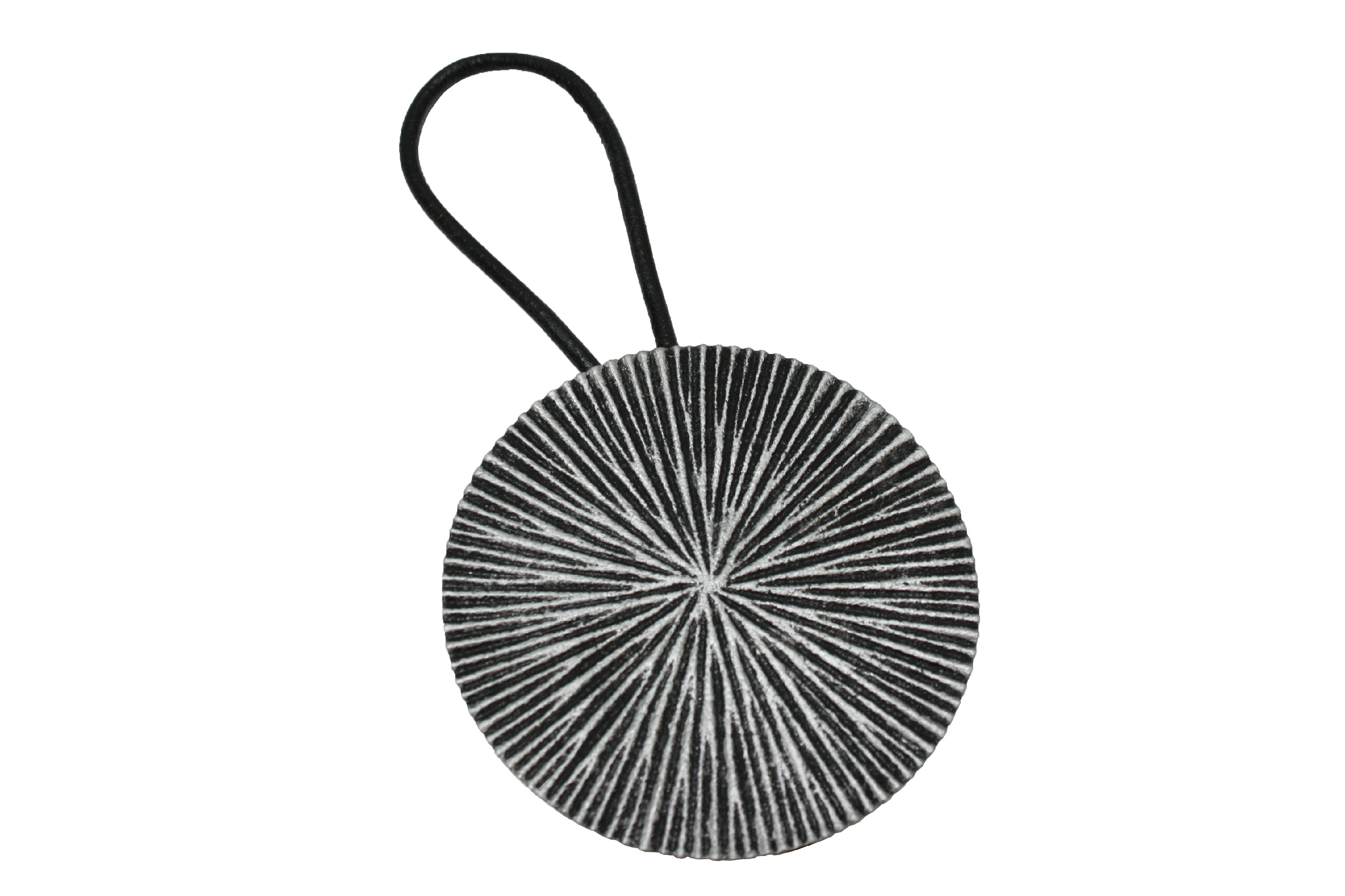 Kov, s magnetem pro snadnější upevnění na dekorační látku. Individuálně nastavitelný, vnější rozměr 7,5cm.